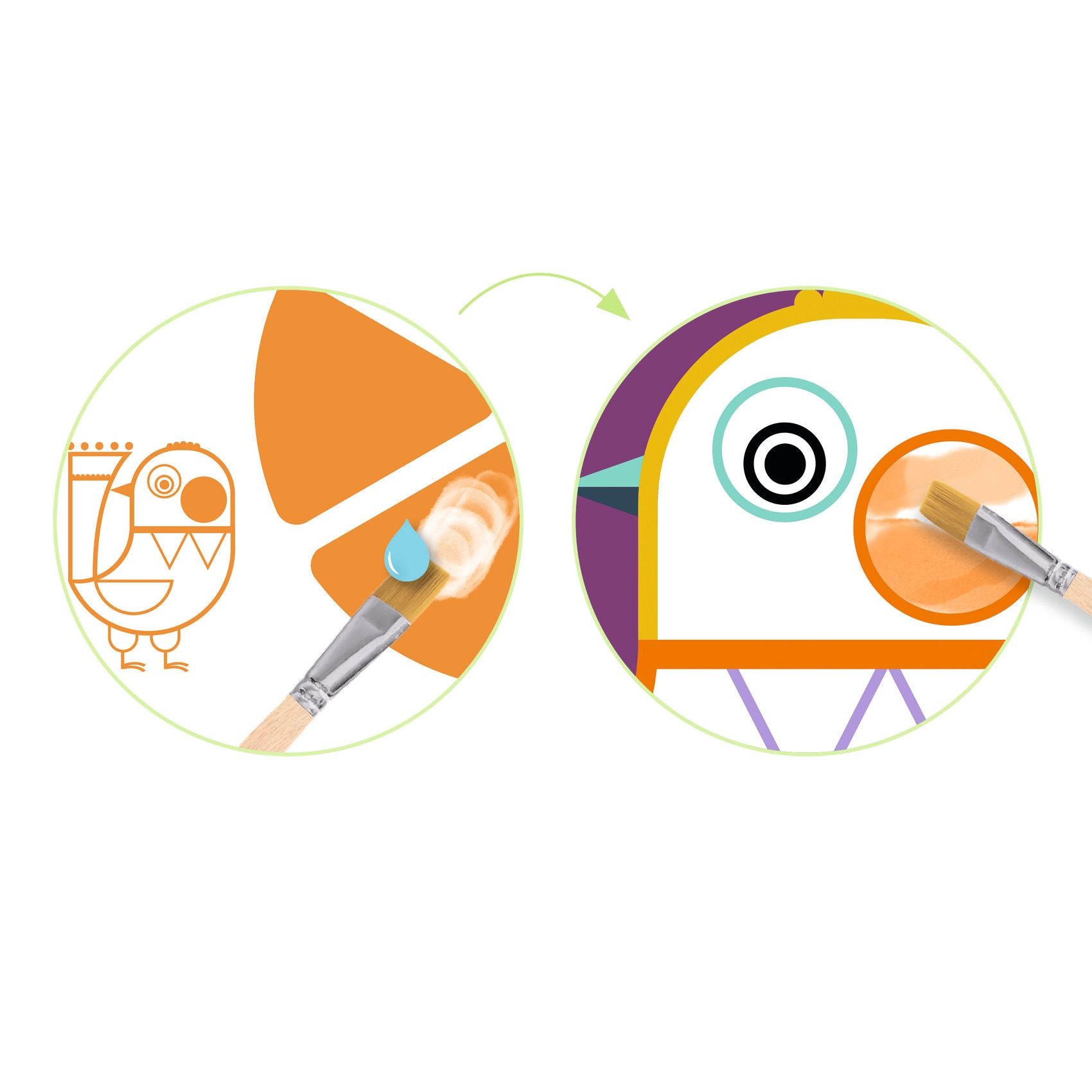 Een aquarelzakje, perfect voor kinderen vanaf 18 maanden. Kleur de witte delen in met het met water gevulde potlood om te onthullen wat eronder verborgen zit. Het is magisch: patronen verschijnen en veranderen van kleur! Zodra de borden droog zijn, kun je helemaal opnieuw beginnen!