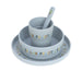 The children's crockery set in the Happy Fruits Lemon design is BPA free, has a good grip on the table thanks to non-slip ring on the underside - Dishwasher & microwave safe (up to max. 400W) - Lightweight and unbreakable material.