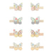 These beautiful new Betty butterfly mini clips are sure to make hearts flutter! Crafted from a fun mix of floral and glitter fabrics, these would look super pretty decorating any 'do!